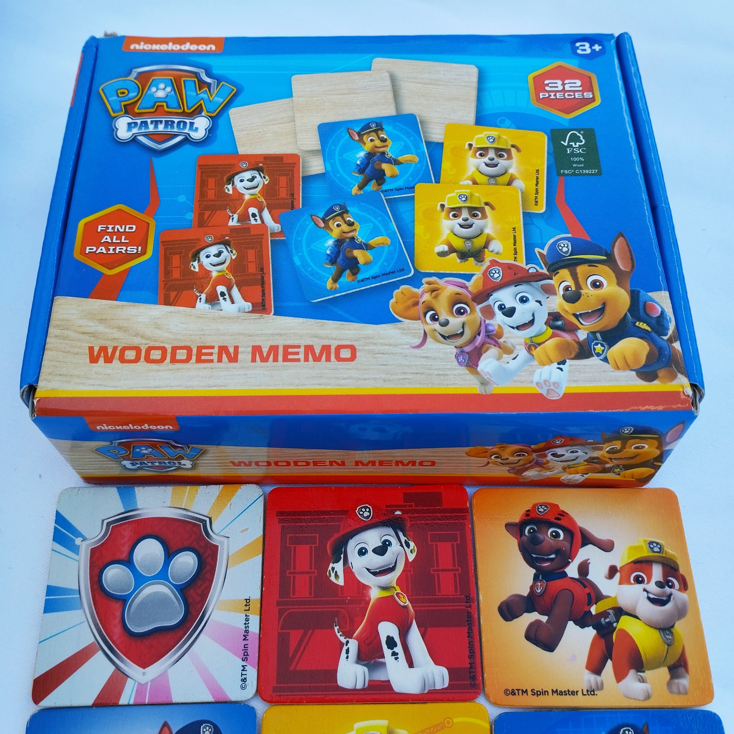 Jeu de mémo Pat Patrouille, comprenant 32 pièces en bois. Adapté aux enfants âgés de plus de 3 ans.