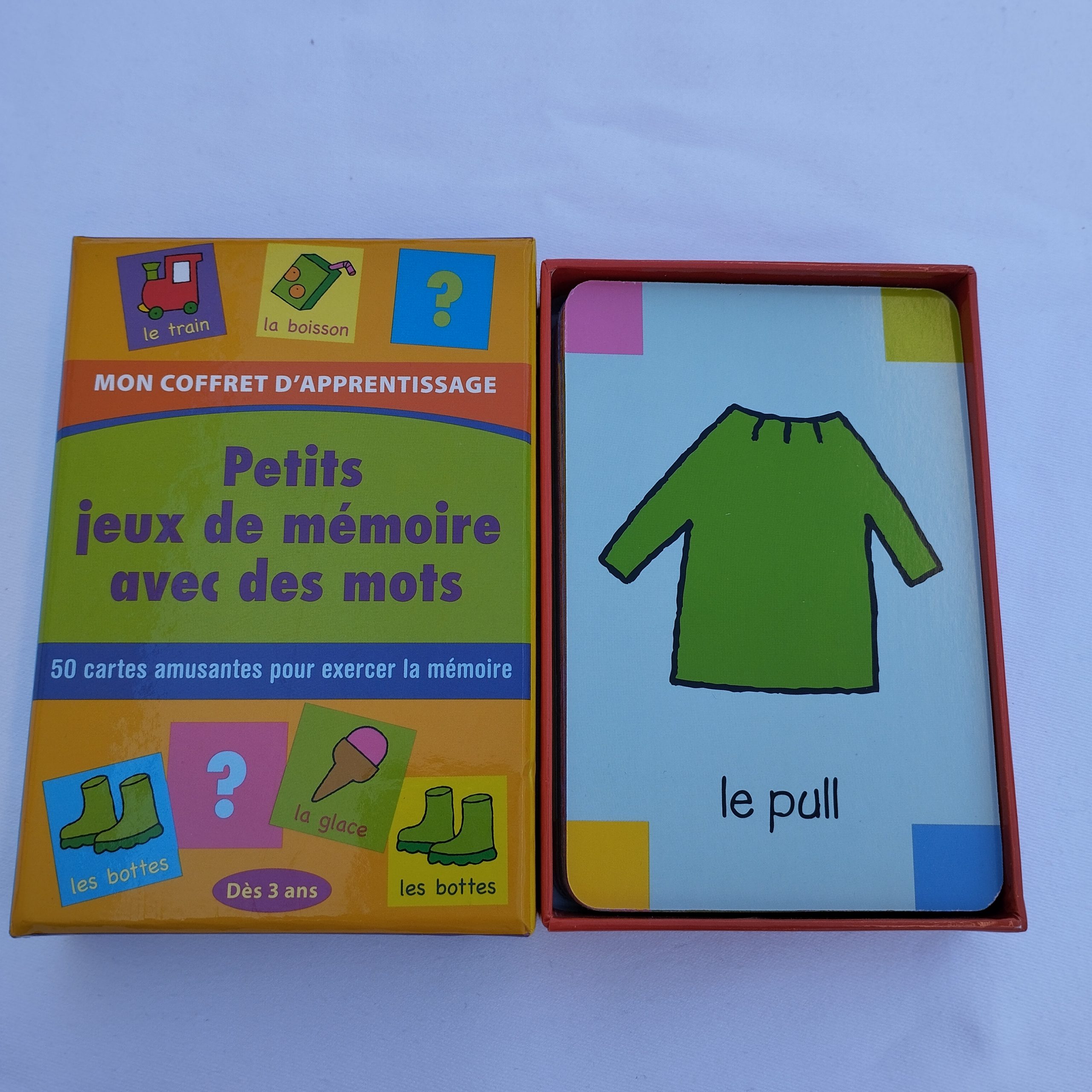 Petit coffret jeux de mémoire des mots comprenant 50 cartes . A partir de 3 ans