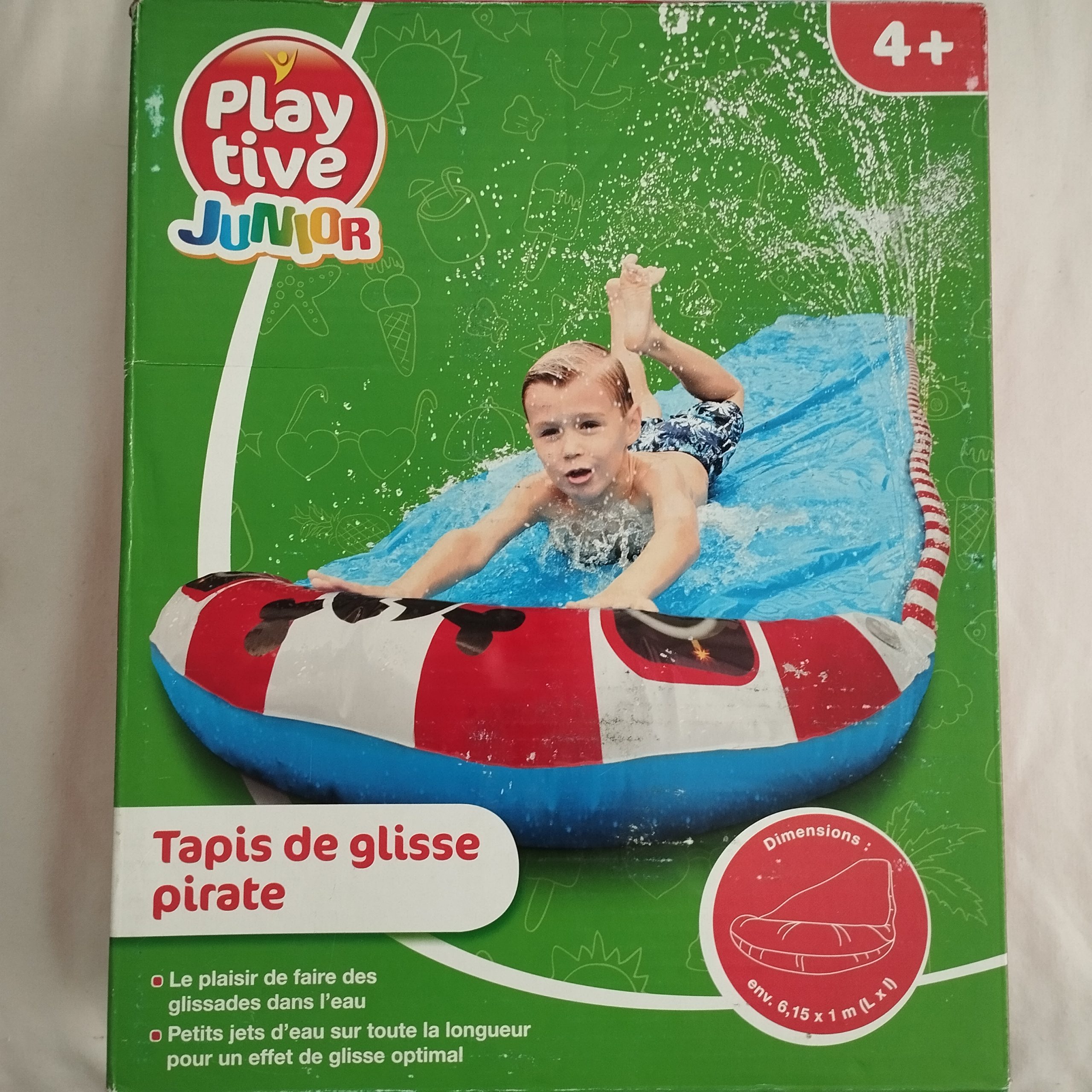 Description: Tapis de glisse Pirate NEUF, ce tapis intègre avec des petits jets d’eau sur toute la longueur pour un effet de glisse optimal: Sensations et amusements garantis. A partir de 4 ans.
